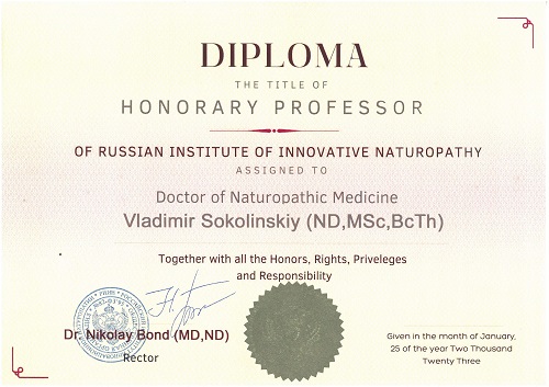 - диплом Почётного профессора РИИН;